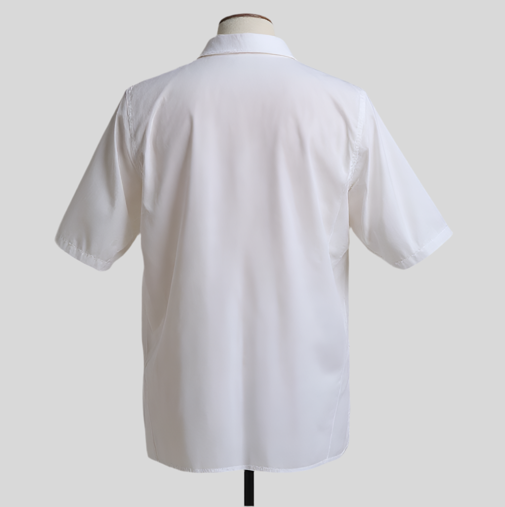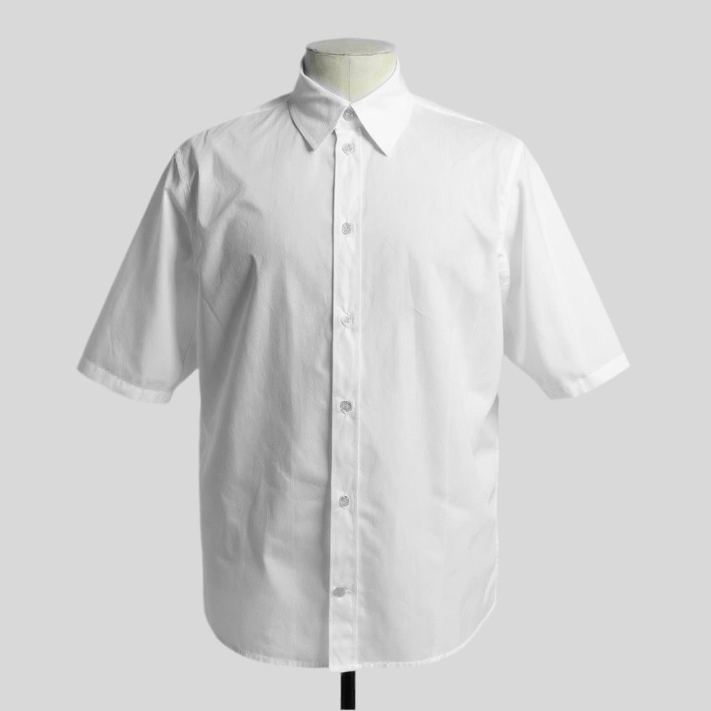 Crafted from premium cotton poplin, this short sleeved shirt offers a crisp, smooth handfeel with a subtle sheen, ensuring both durability and comfort. The tightly woven fabric provides structure while remaining breathable, making it ideal for all-day wear.
